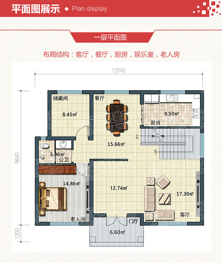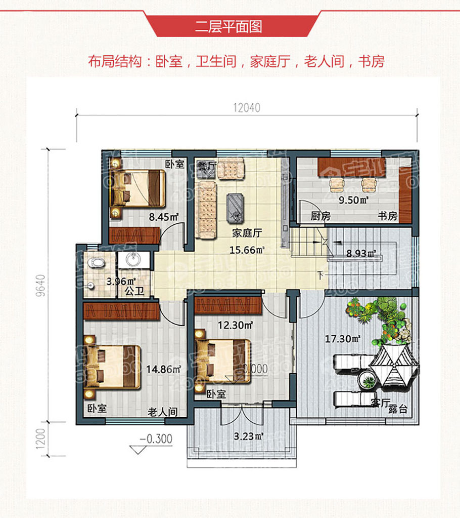開(kāi)間:12.04米 | 進(jìn)深:10.84米 | 占地面積:111平方米 | 建筑面積:202.67平方米 |