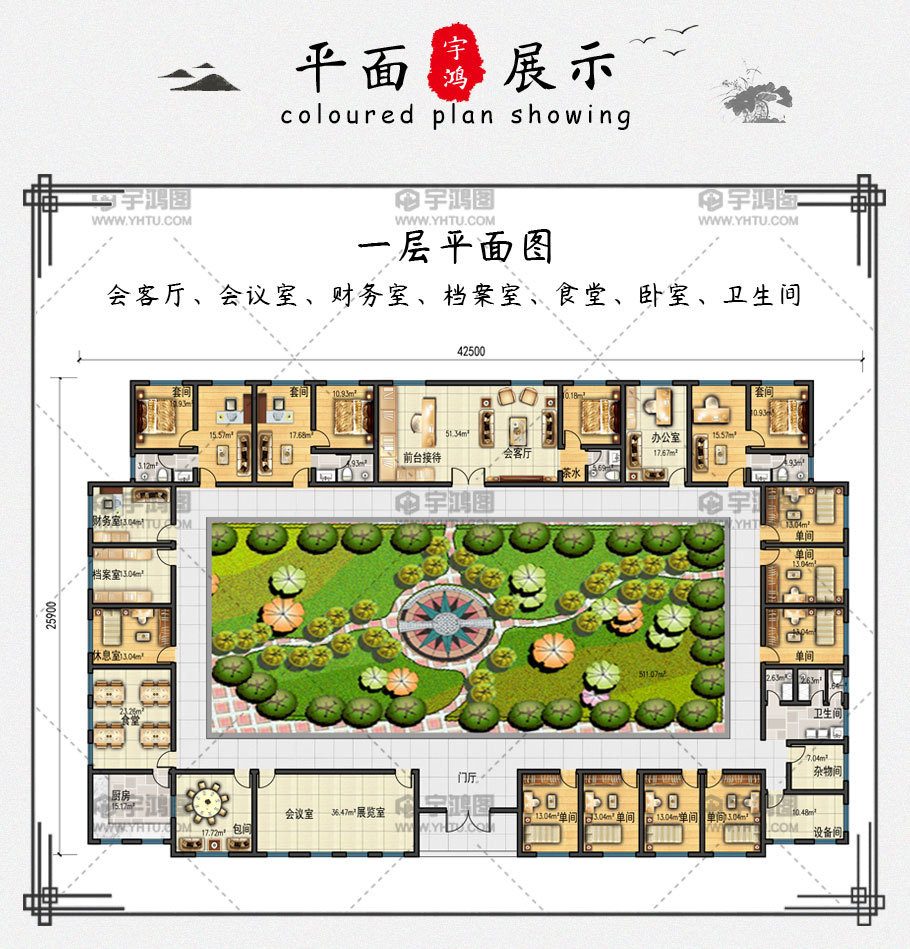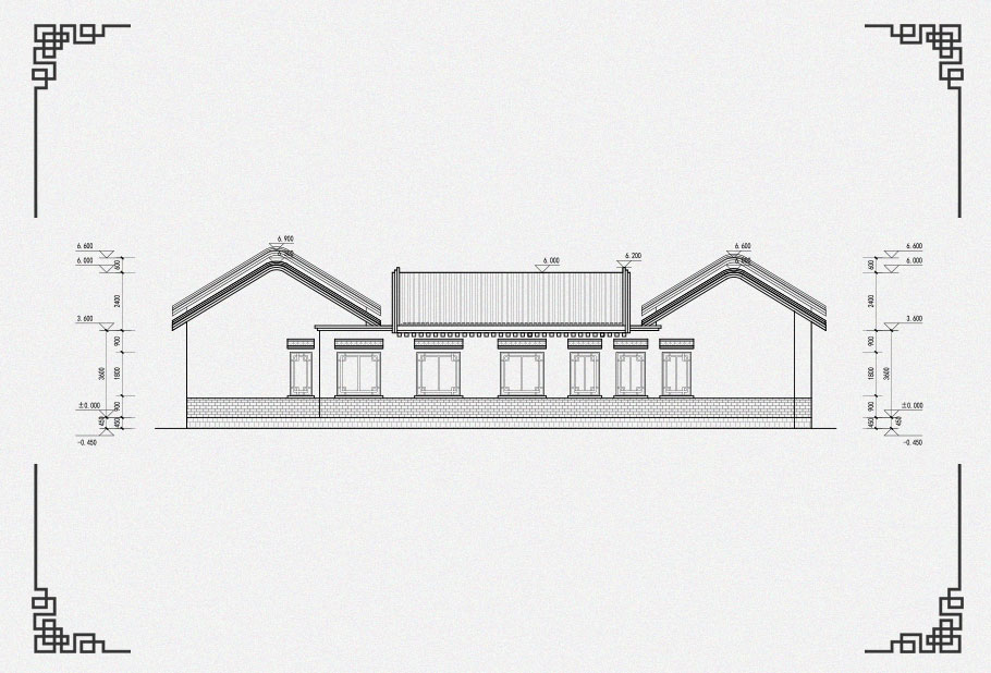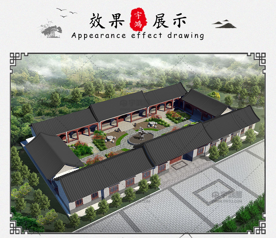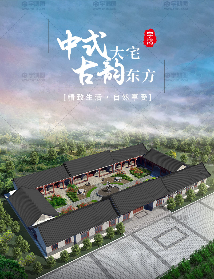 風格:中式 層數:一層 結構形式:磚混結構 圖紙編號:YH-A-1005