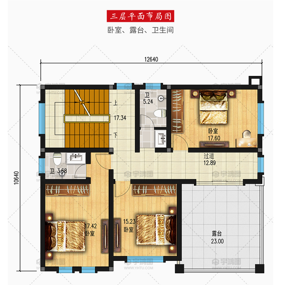 建筑平面圖:一層平面圖,二層平面圖,三層平面圖;