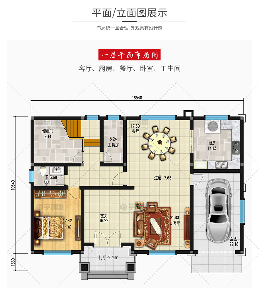 本戶型為豪華大氣新款農村帶車庫別墅設計圖,引流自建房潮流。外觀新穎獨特、簡約大氣,幾十年也不會過時。別墅外觀錯落有致,多采光窗,增加了室內的采光,視覺上給人一種高大上的感覺,非常經典實用接地氣,有新農村地方特色,關鍵造價還不高。在充滿綠意的地方建這樣一棟房子,品幽靜之自然,享自由之生活,人生一大樂事!