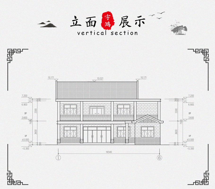 建筑立面圖:東立面圖,西立面圖,南立面圖,北立面圖,剖面圖;