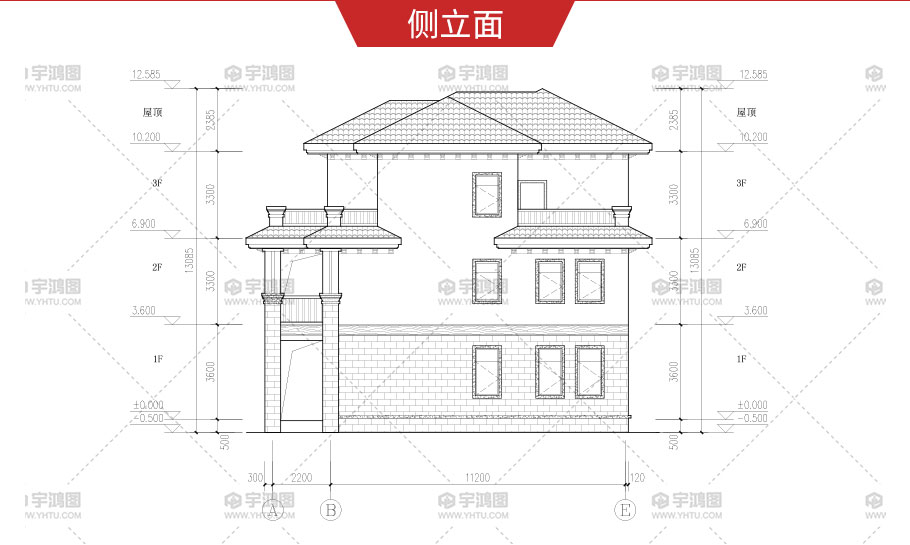 建筑立面圖:東立面圖,西立面圖,南立面圖,北立面圖,剖面圖;