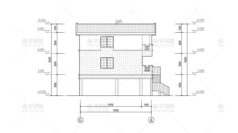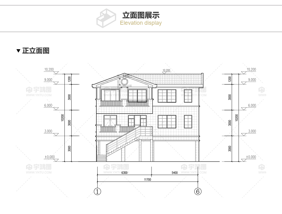 風格:歐式 | 層數:三層 | 結構形式:磚混結構 | 圖紙編號:YH-A-3020 |
