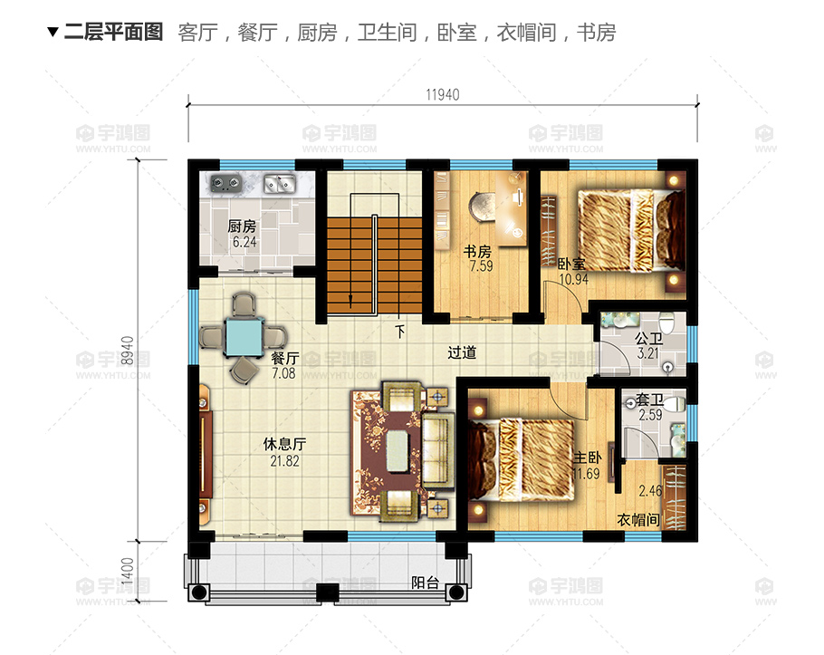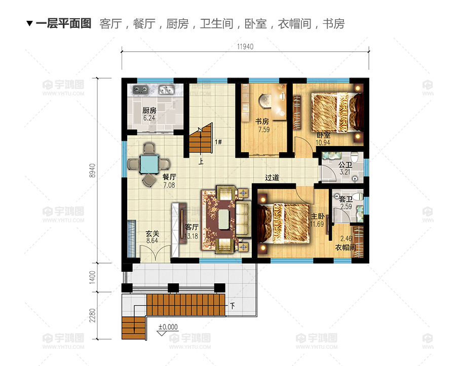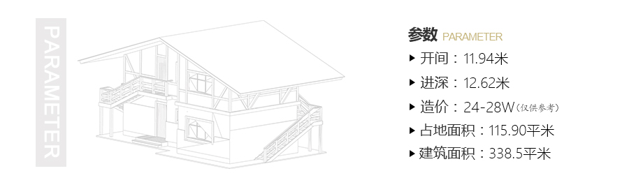 開間:11.94米 | 進深:12.62米 | 占地面積:115.9平方米 | 建筑面積:338.5平方米 |