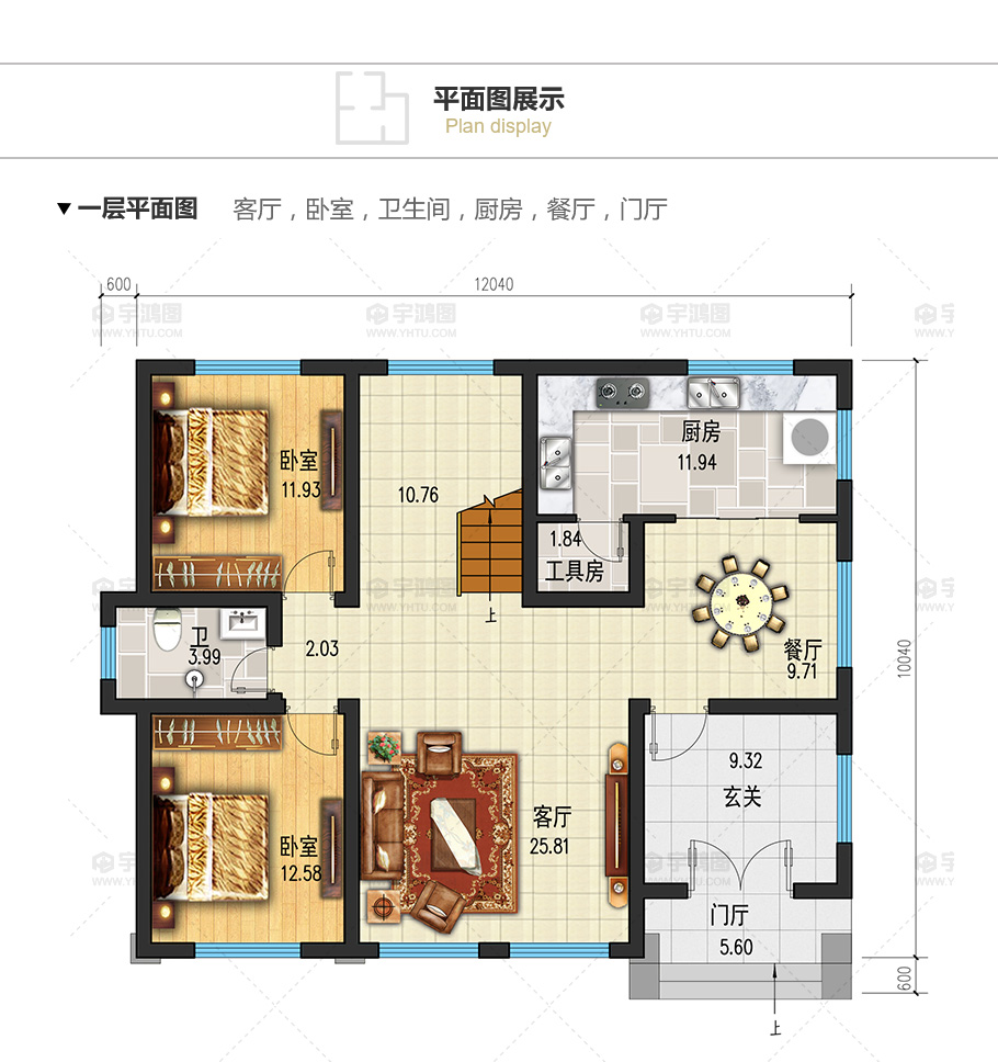 開間:12.64米 | 進深:10.64米 | 占地面積:118.6平方米 | 建筑面積:333.1平方米 |