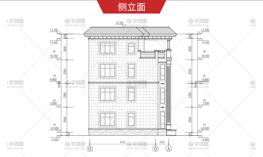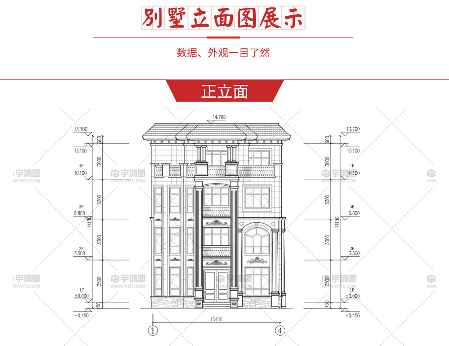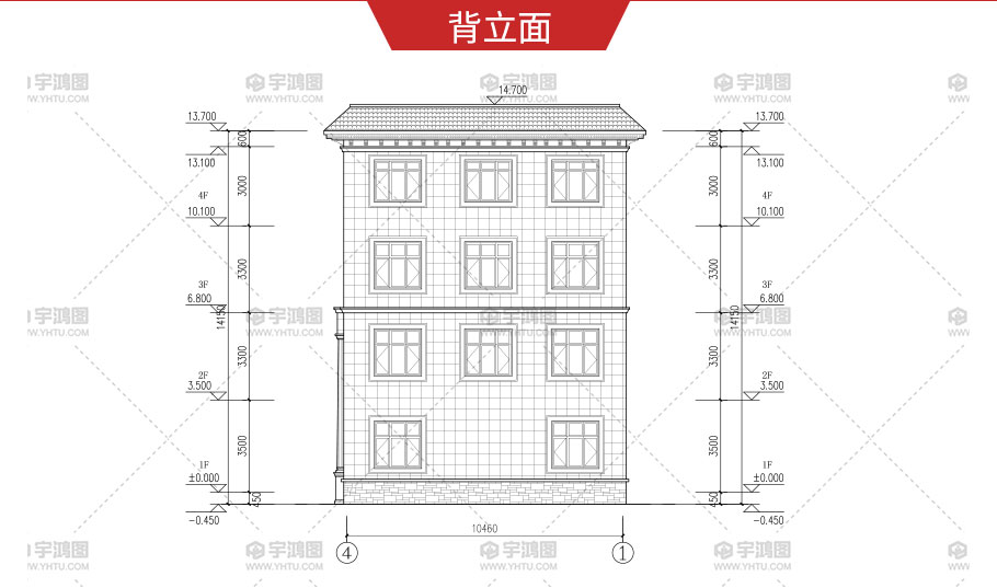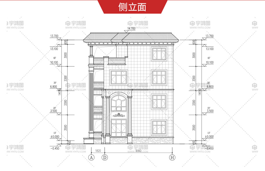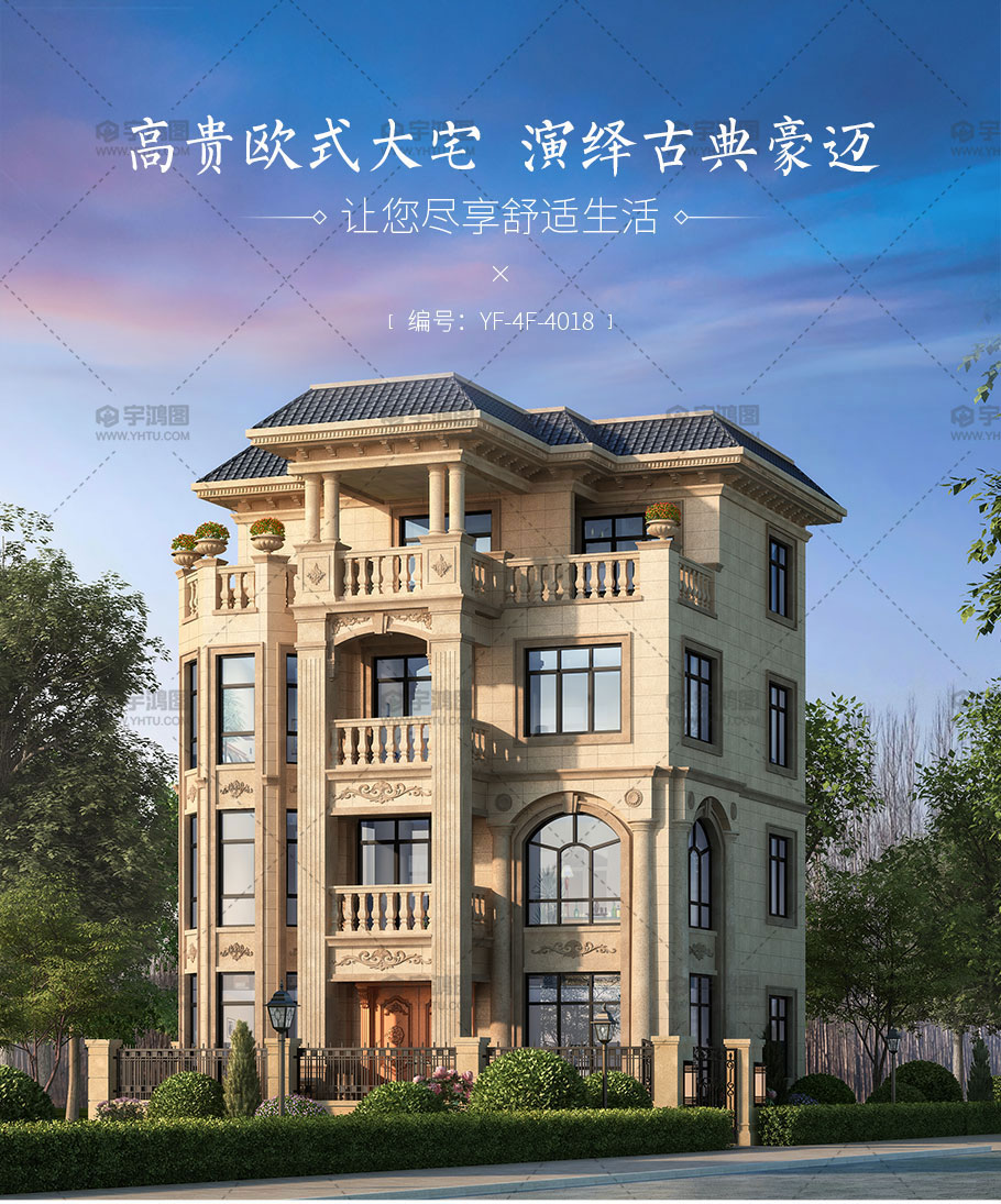 風格:歐式 層數:四層 結構形式:框架結構 圖紙編號:YH-A-4018