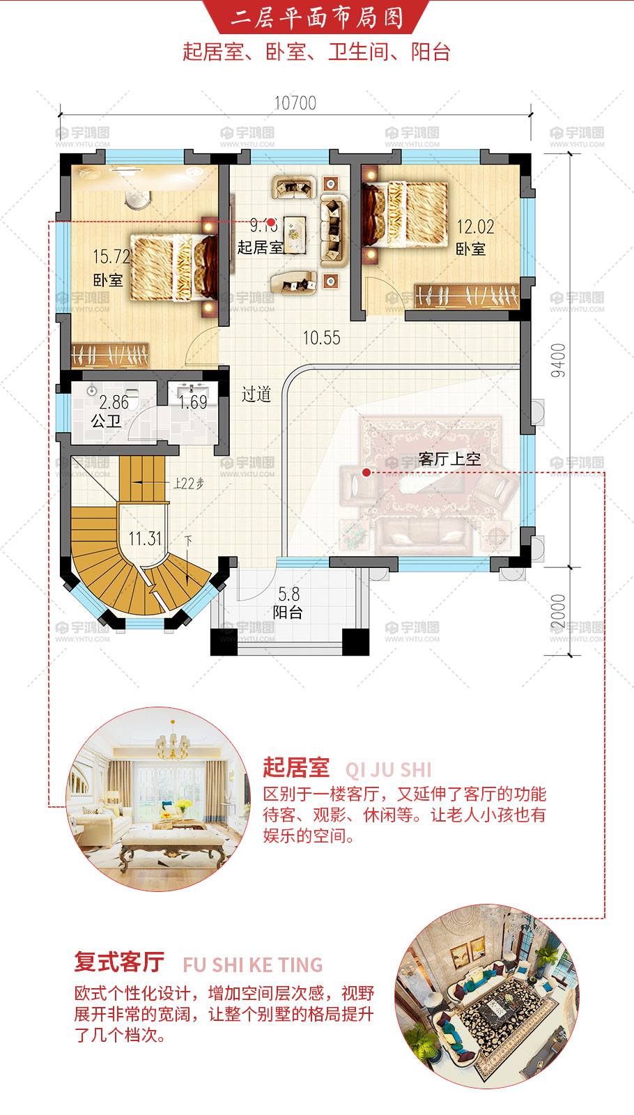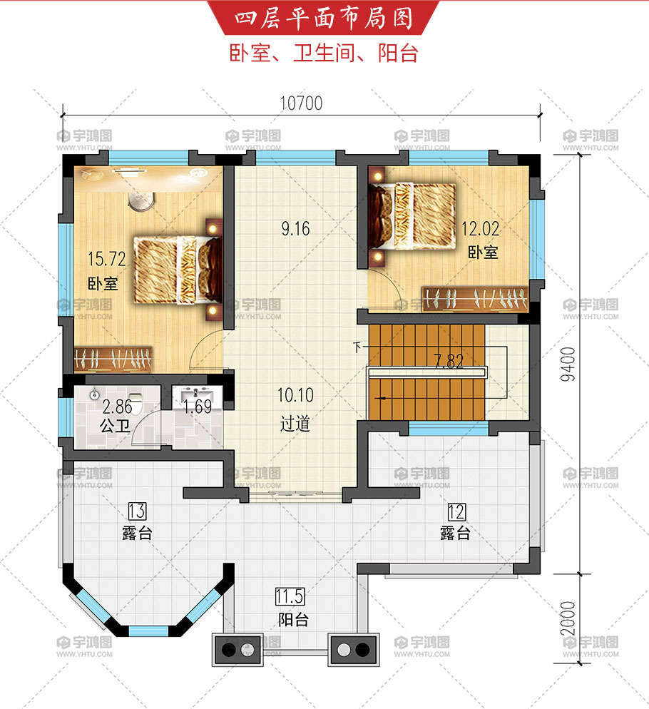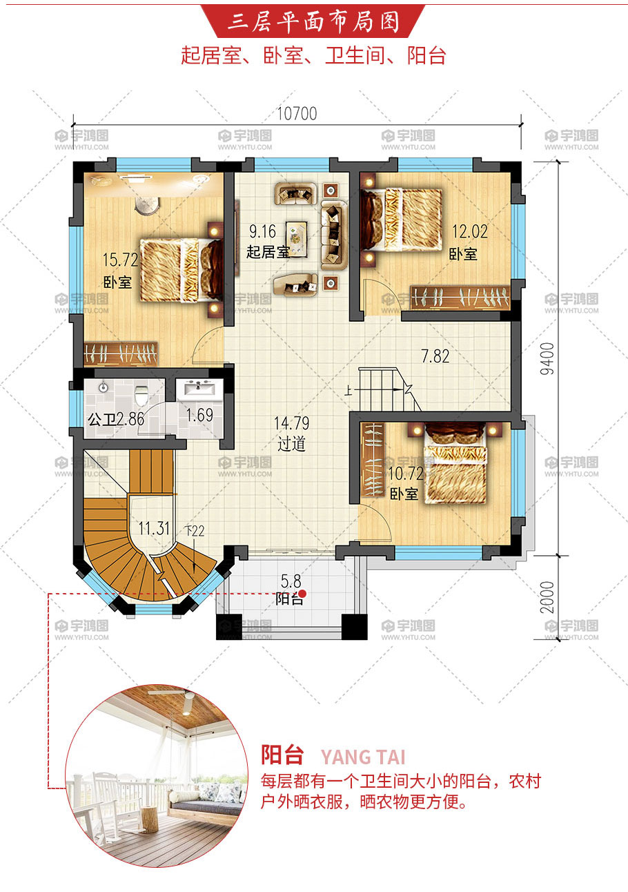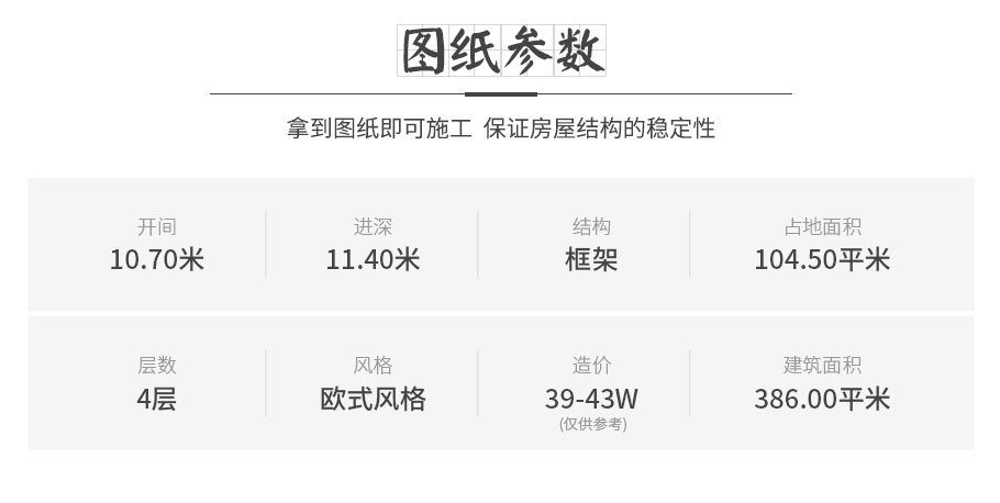 開間:10.7米 進深:11.4米 占地面積:104.5平方米 建筑面積:386平方米