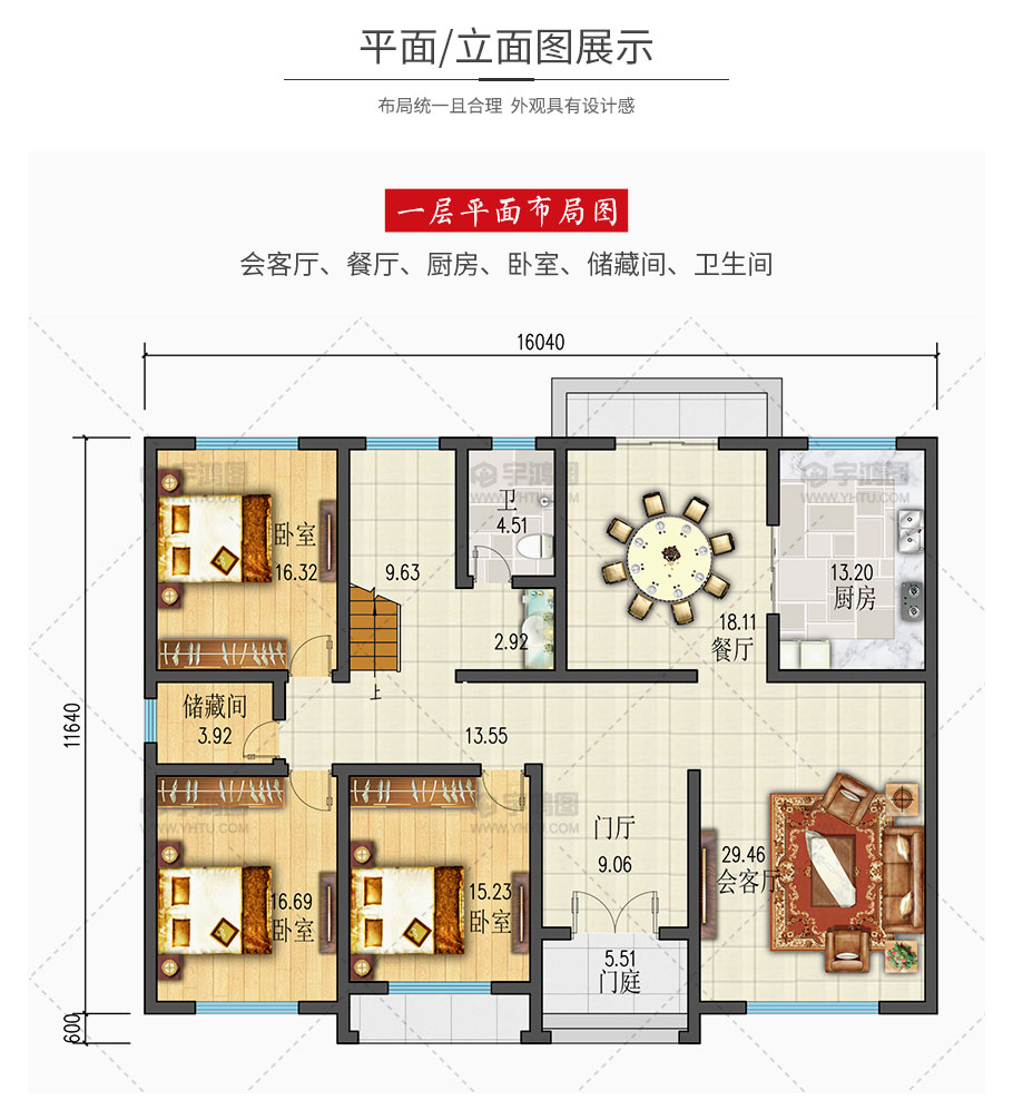 開間:16.04米 | 進深:12.24米 | 占地面積:191平方米 | 建筑面積:340.48平方米 |