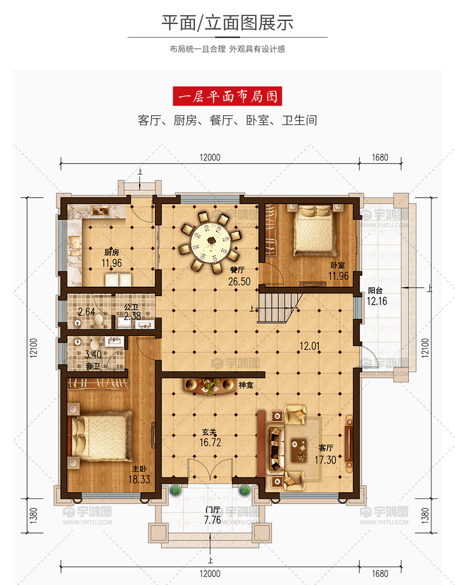 開間:13.68米 | 進深:13.48米 | 占地面積:142.8平方米 | 建筑面積:415平方米 |