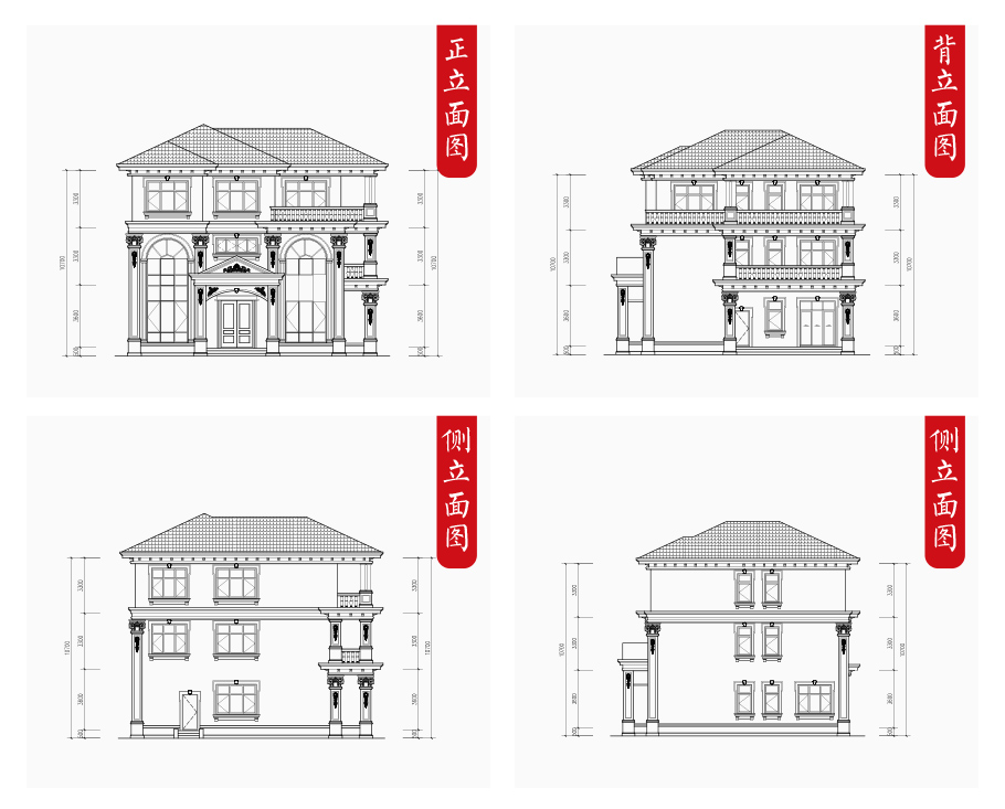 建筑圖: | 建筑平面圖:一層平面圖,二層平面圖,三層平面圖; 建筑立面圖:東立面圖,西立面圖,南立面圖,北立面圖,剖面圖; 大樣圖:樓梯詳圖,細部大樣,門窗大樣 |