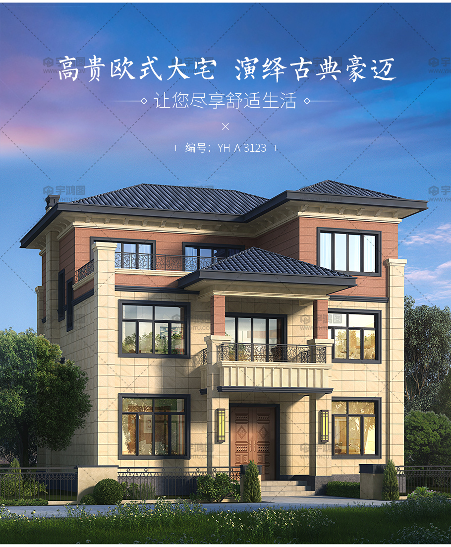 風(fēng)格:歐式 | 層數(shù):三層 | 結(jié)構(gòu)形式:磚混結(jié)構(gòu) | 圖紙編號:YH-A-3123 |
