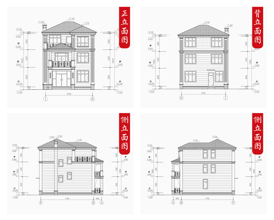 建筑圖: 建筑平面圖:一層平面圖,二層平面圖,三層平面圖; 建筑立面圖:東立面圖,西立面圖,南立面圖,北立面圖,剖面圖; 大樣圖:樓梯詳圖,細部大樣,門窗大樣