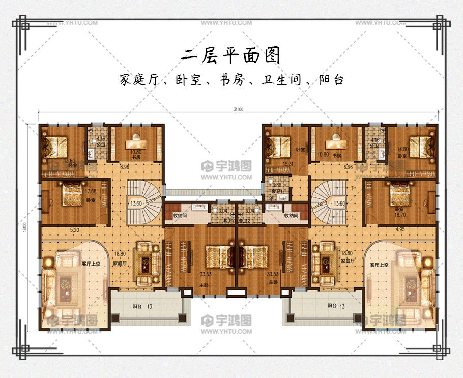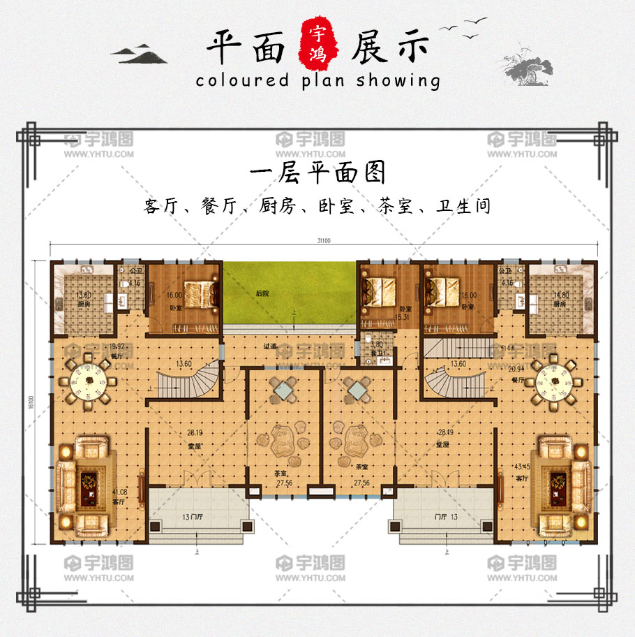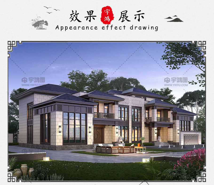 風格:中式 | 層數:二層 | 結構形式:框架結構 | 圖紙編號:YH-A-2119 |