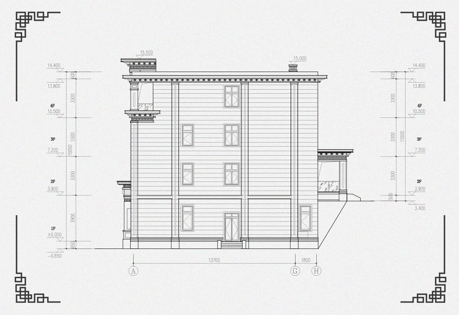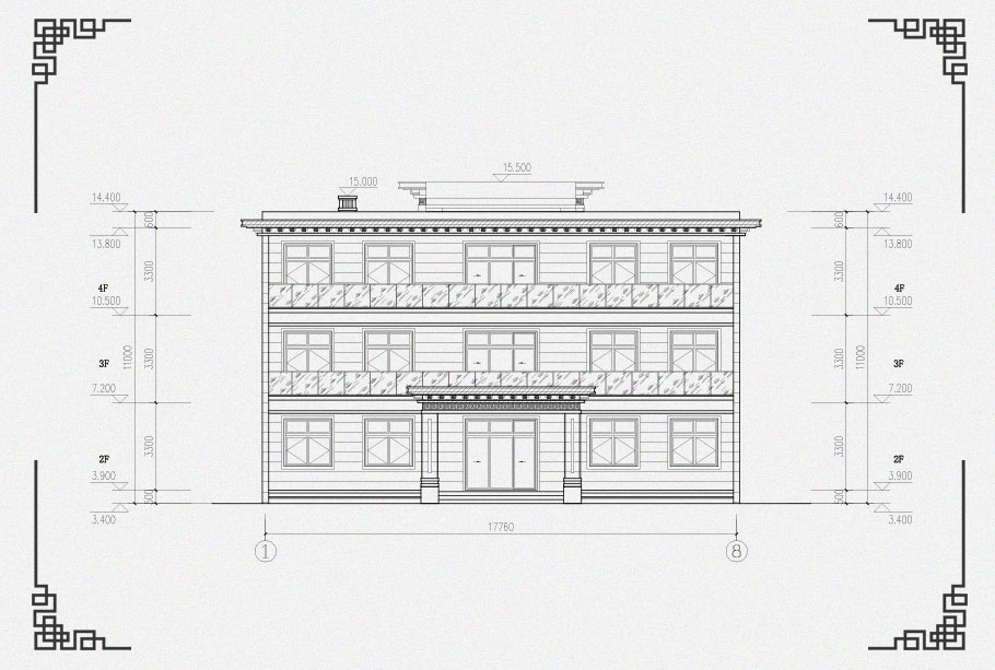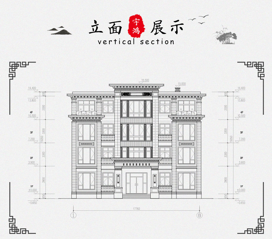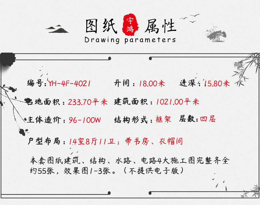 風格:中式 | 層數:四層 | 結構形式:框架結構 | 圖紙編號:YH-A-4021 |