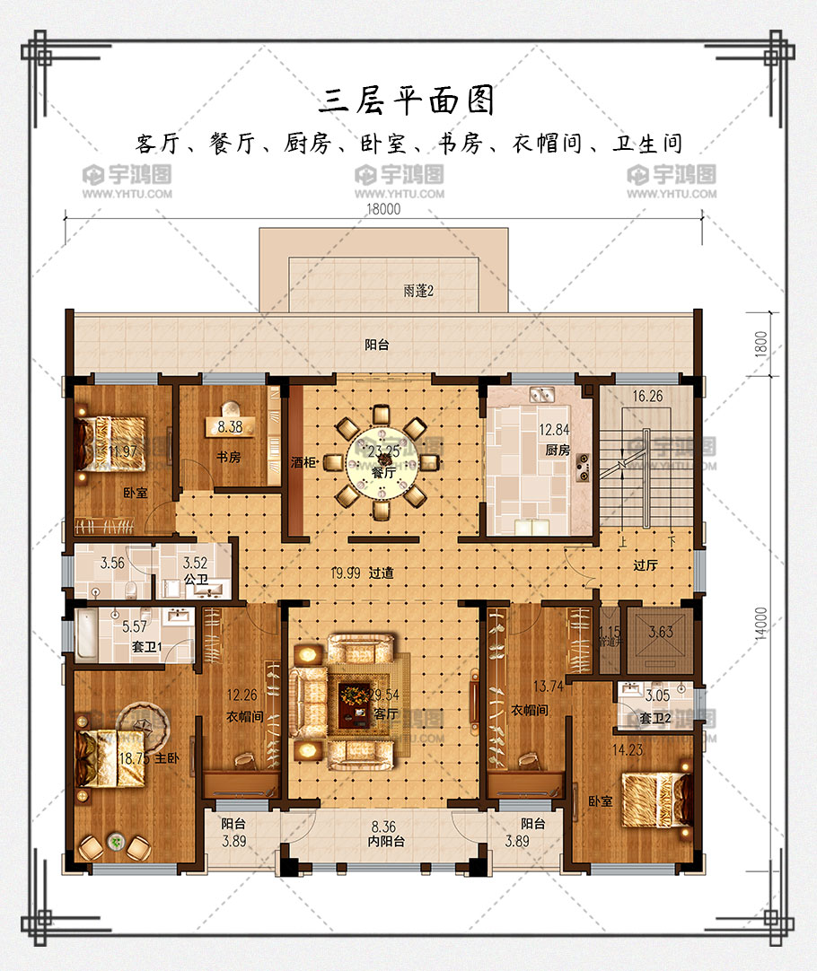 開間:18米 | 進深:15.8米 | 占地面積:233.7平方米 | 建筑面積:1021平方米 |
