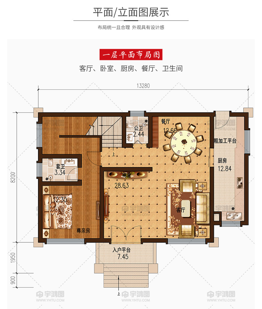 開間:13.28米 | 進深:11.05米 | 占地面積:106.5平方米 | 建筑面積:398.6平方米 |