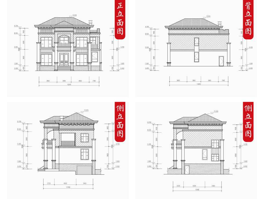 建筑圖: | 建筑平面圖:一層平面圖,二層平面圖; 建筑立面圖:東立面圖,西立面圖,南立面圖,北立面圖,剖面圖; 大樣圖:樓梯詳圖,細部大樣,門窗大樣 |