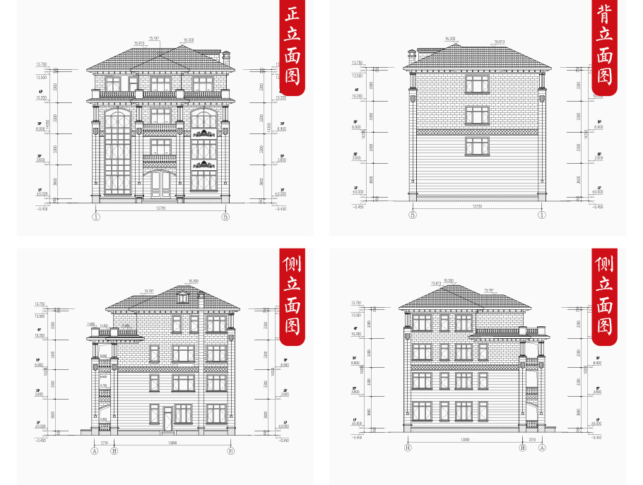 建筑圖: | 建筑平面圖:一層平面圖,二層平面圖,三層平面圖,四層平面圖; 建筑立面圖:東立面圖,西立面圖,南立面圖,北立面圖,剖面圖; 大樣圖:樓梯詳圖,細部大樣,門窗大樣 |