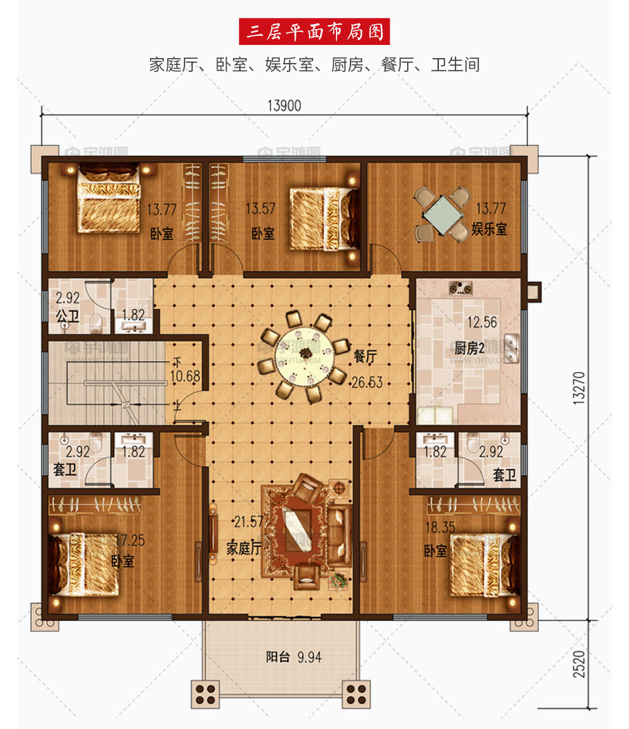 開間:13.9米 | 進深:15.79米 | 占地面積:184.5平方米 | 建筑面積:715.4平方米 |