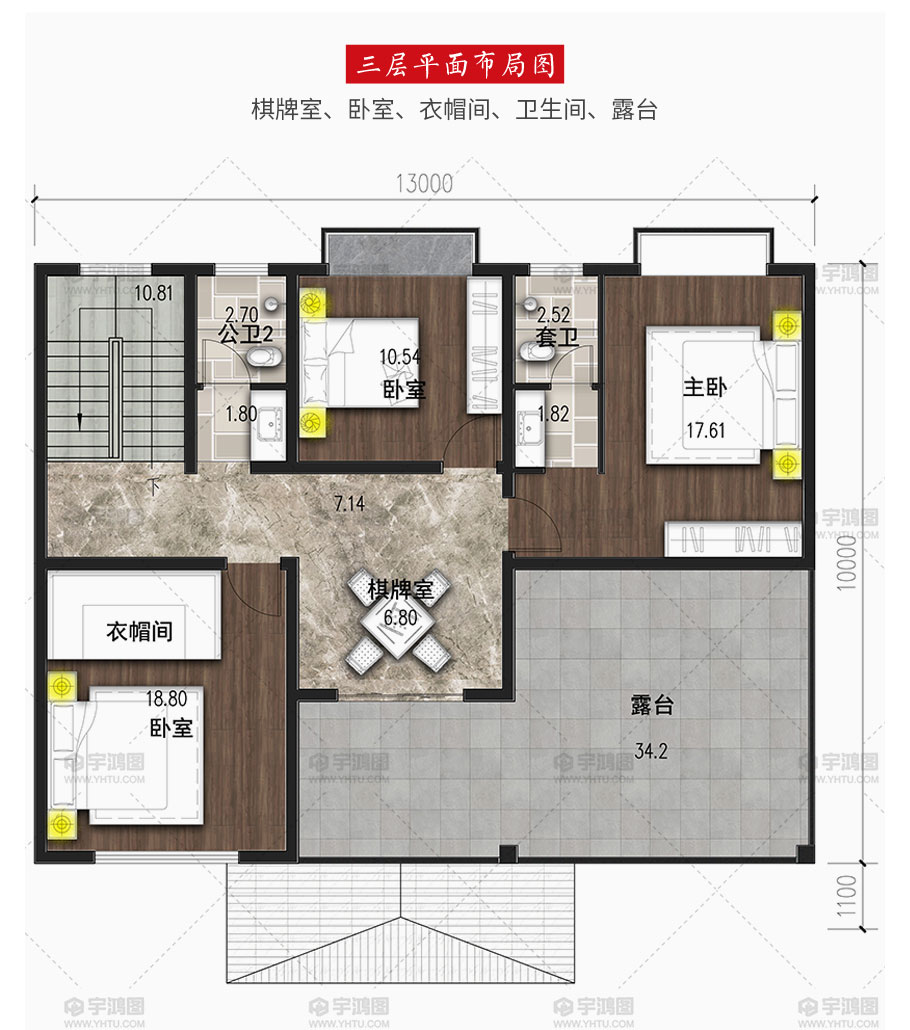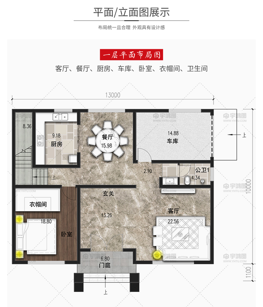 開(kāi)間:13米 | 進(jìn)深:11.1米 | 占地面積:127.3平方米 | 建筑面積:372平方米 |