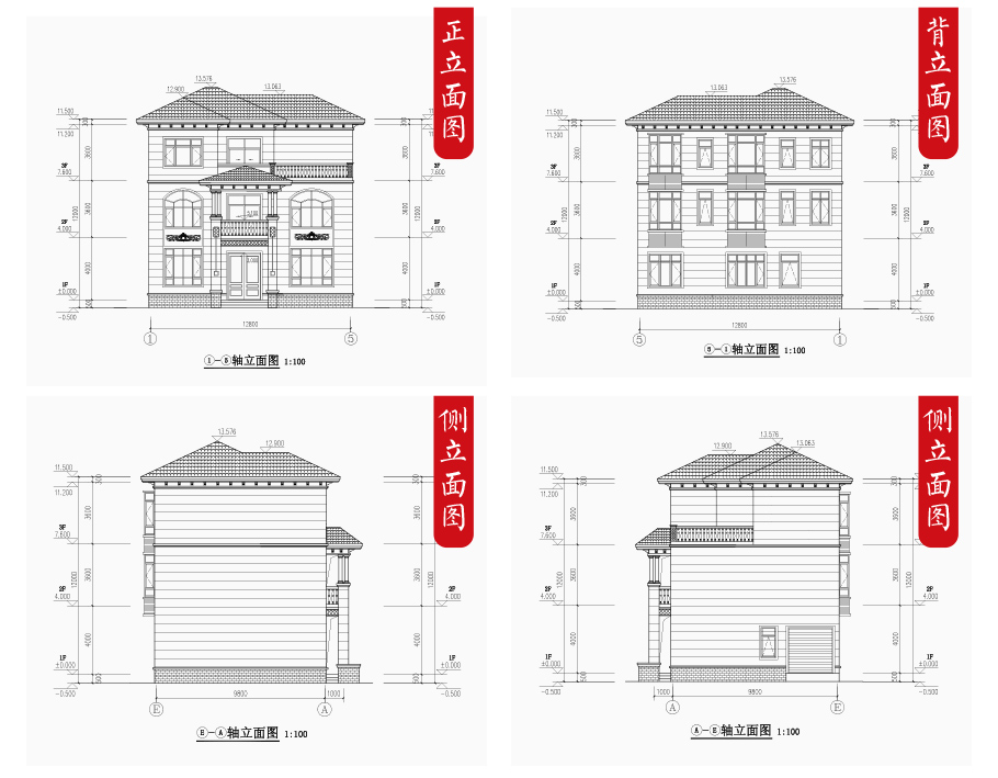 建筑圖: | 建筑平面圖:一層平面圖,二層平面圖,三層平面圖; 建筑立面圖:東立面圖,西立面圖,南立面圖,北立面圖,剖面圖; 大樣圖:樓梯詳圖,細(xì)部大樣,門窗大樣 |