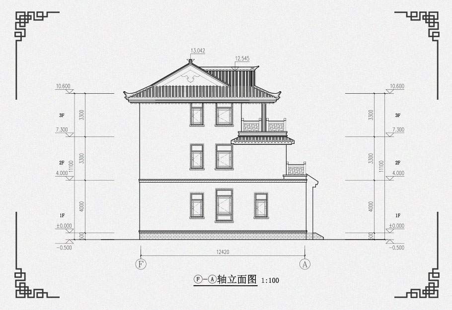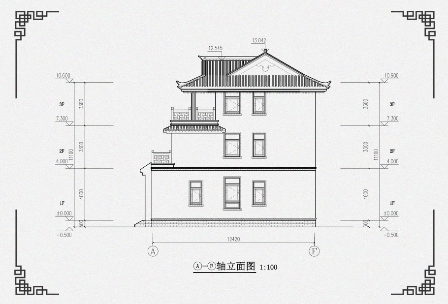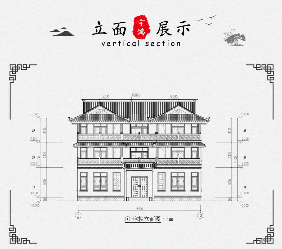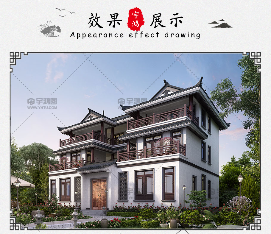 風格:中式 | 層數:三層 | 結構形式:框架結構 | 圖紙編號:YH-A-3145 |