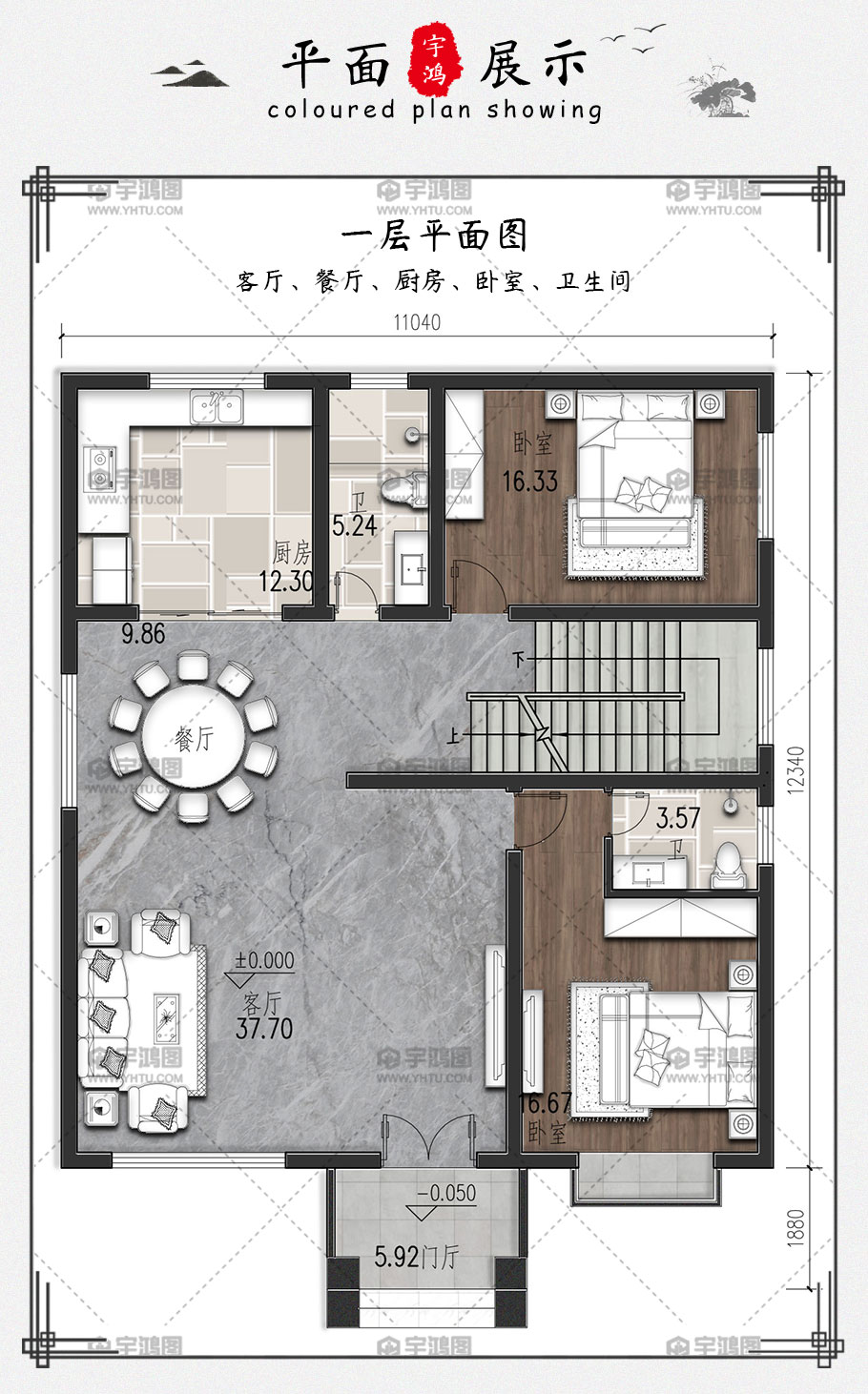 開間:11.04米 | 進深:14.22米 | 占地面積:136.2平方米 | 建筑面積:396平方米 |