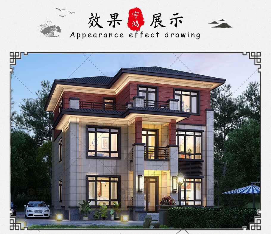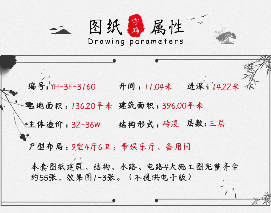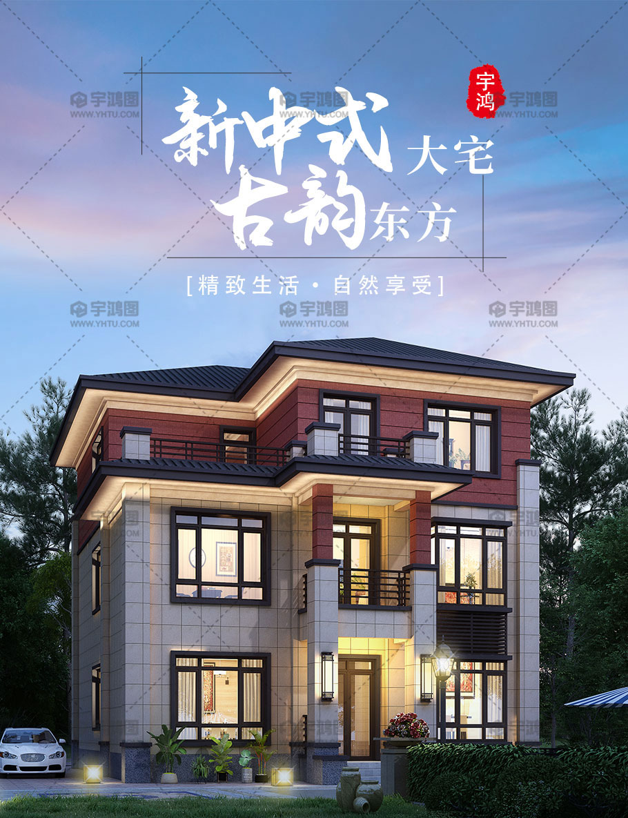 風格:新中式 | 層數:三層 | 結構形式:磚混結構 | 圖紙編號:YH-A-3160 |