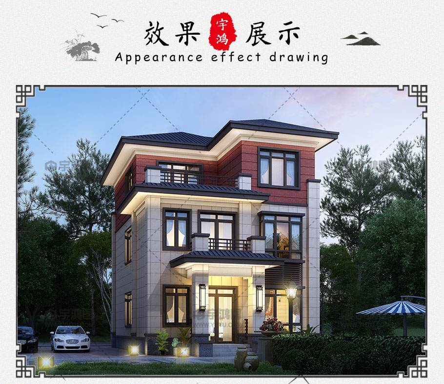 風格:新中式 | 層數:三層 | 結構形式:磚混結構 | 圖紙編號:YH-A-3161 |