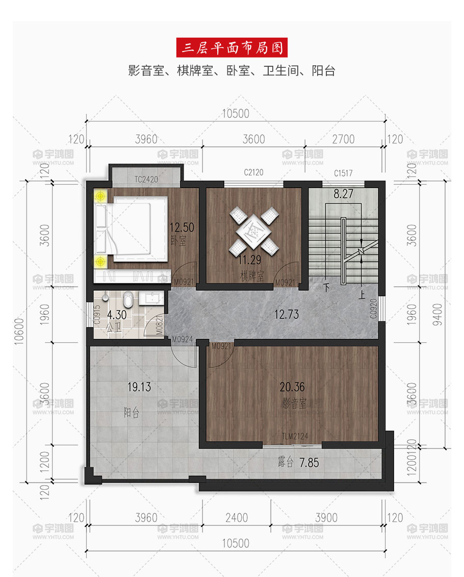 成品圖紙>10.5x10.6米三層現(xiàn)代別墅設(shè)計圖紙