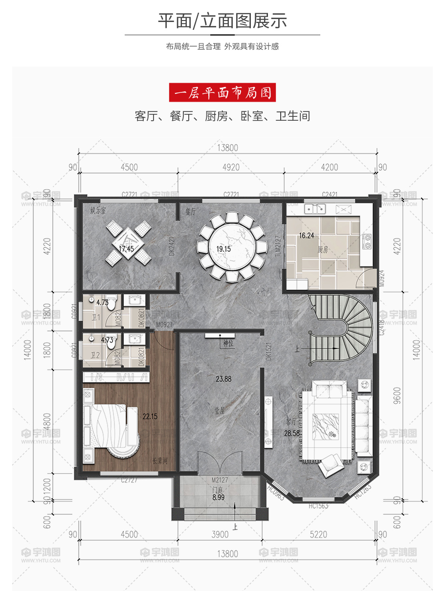 開間:13.8米 | 進深:14米 | 占地面積:190.59平方米 | 建筑面積:475平方米 |