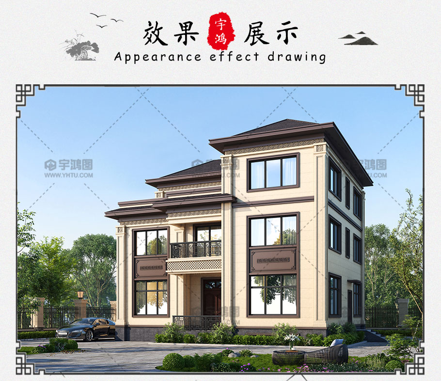 風格:新中式 | 層數:三層 | 結構形式:磚混結構 | 圖紙編號:YH-A-3175 |