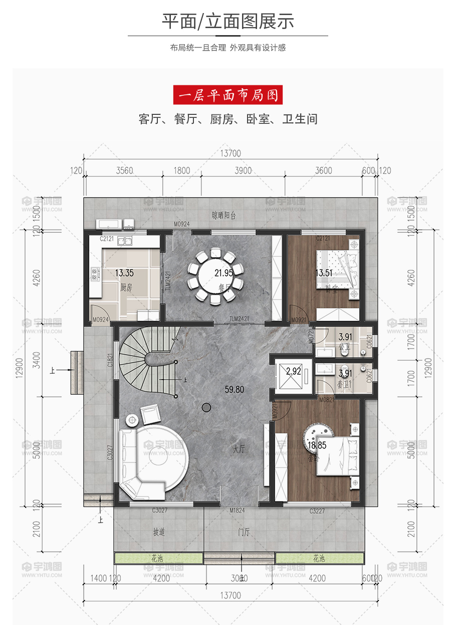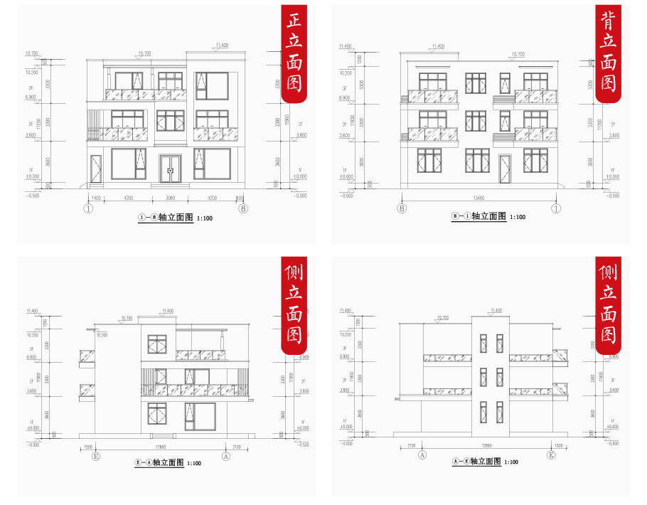 建筑立面圖:東立面圖,西立面圖,南立面圖,北立面圖,剖面圖;