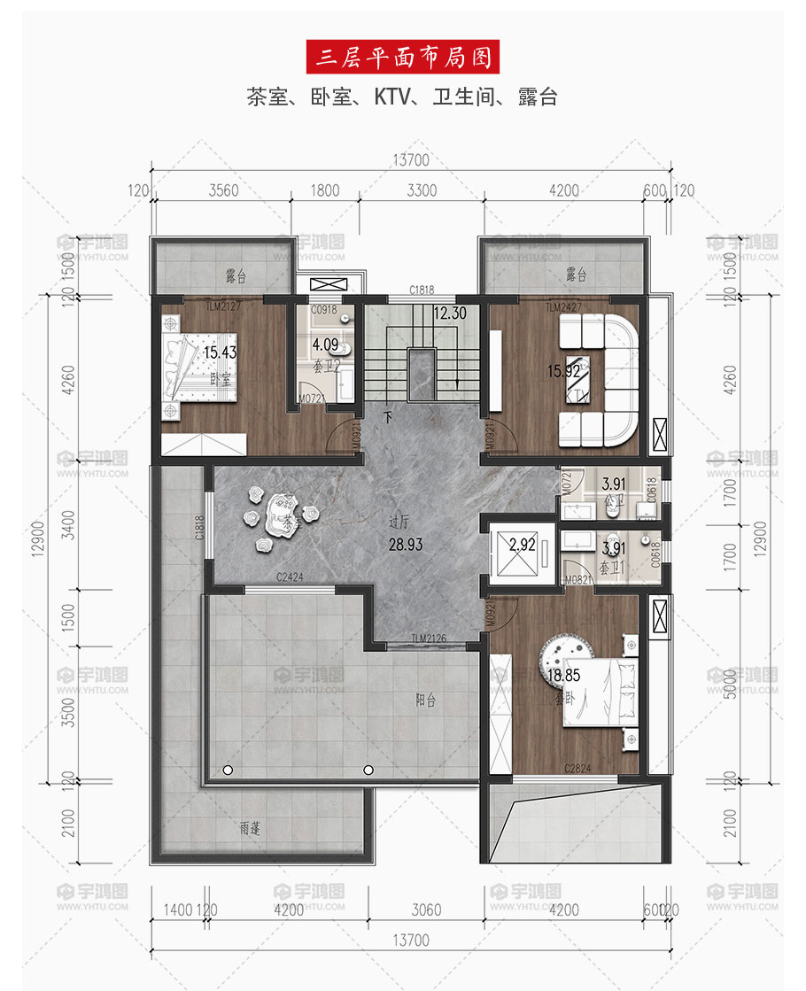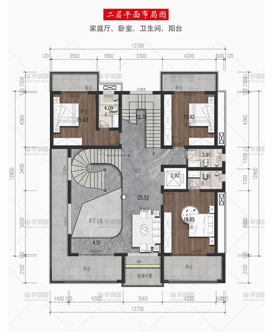 210平三層現(xiàn)代風(fēng)格別墅圖紙帶復(fù)式客廳