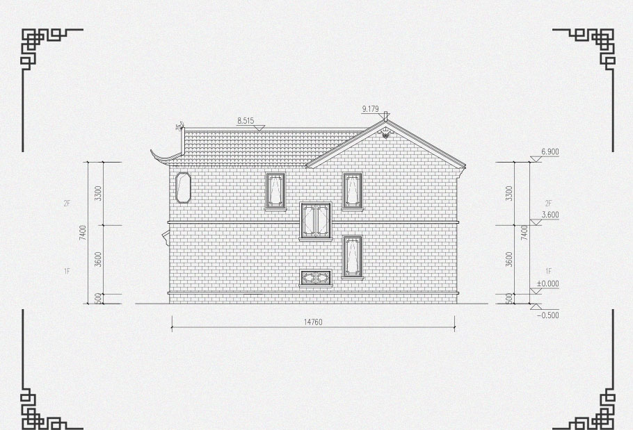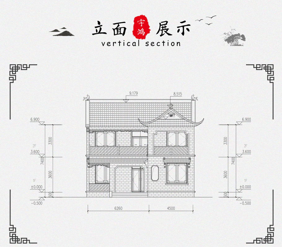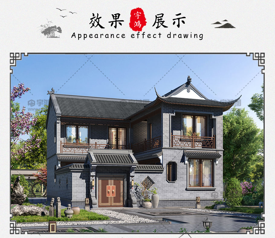 風格:中式 | 層數:二層 | 結構形式:磚混結構 | 圖紙編號:YH-A-2171 |