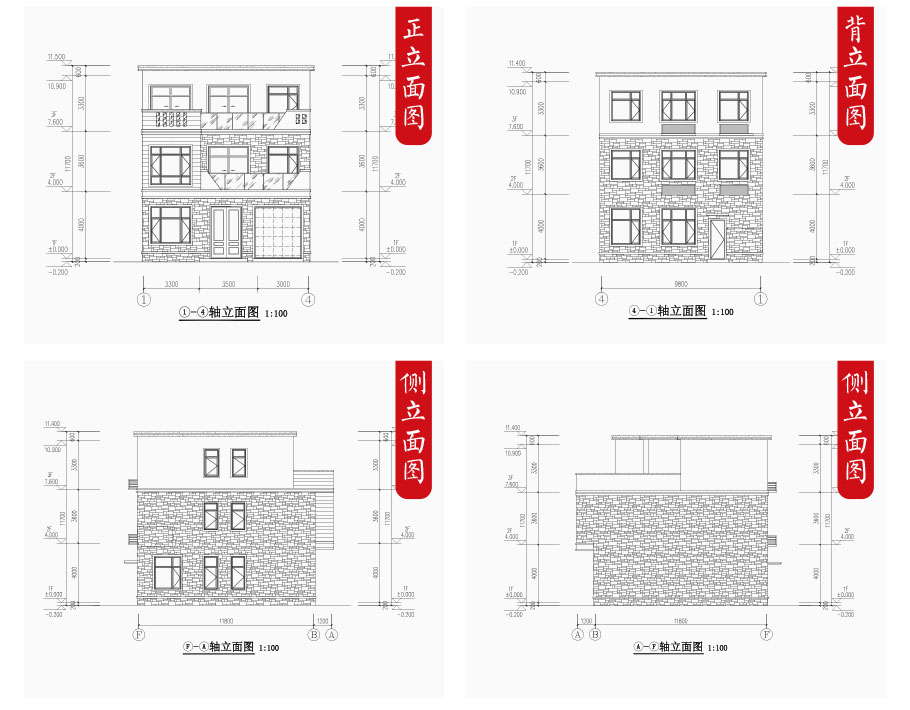 建筑圖: | 建筑平面圖:一層平面圖,二層平面圖,三層平面圖; 建筑立面圖:東立面圖,西立面圖,南立面圖,北立面圖,剖面圖; 大樣圖:樓梯詳圖,細部大樣,門窗大樣 |