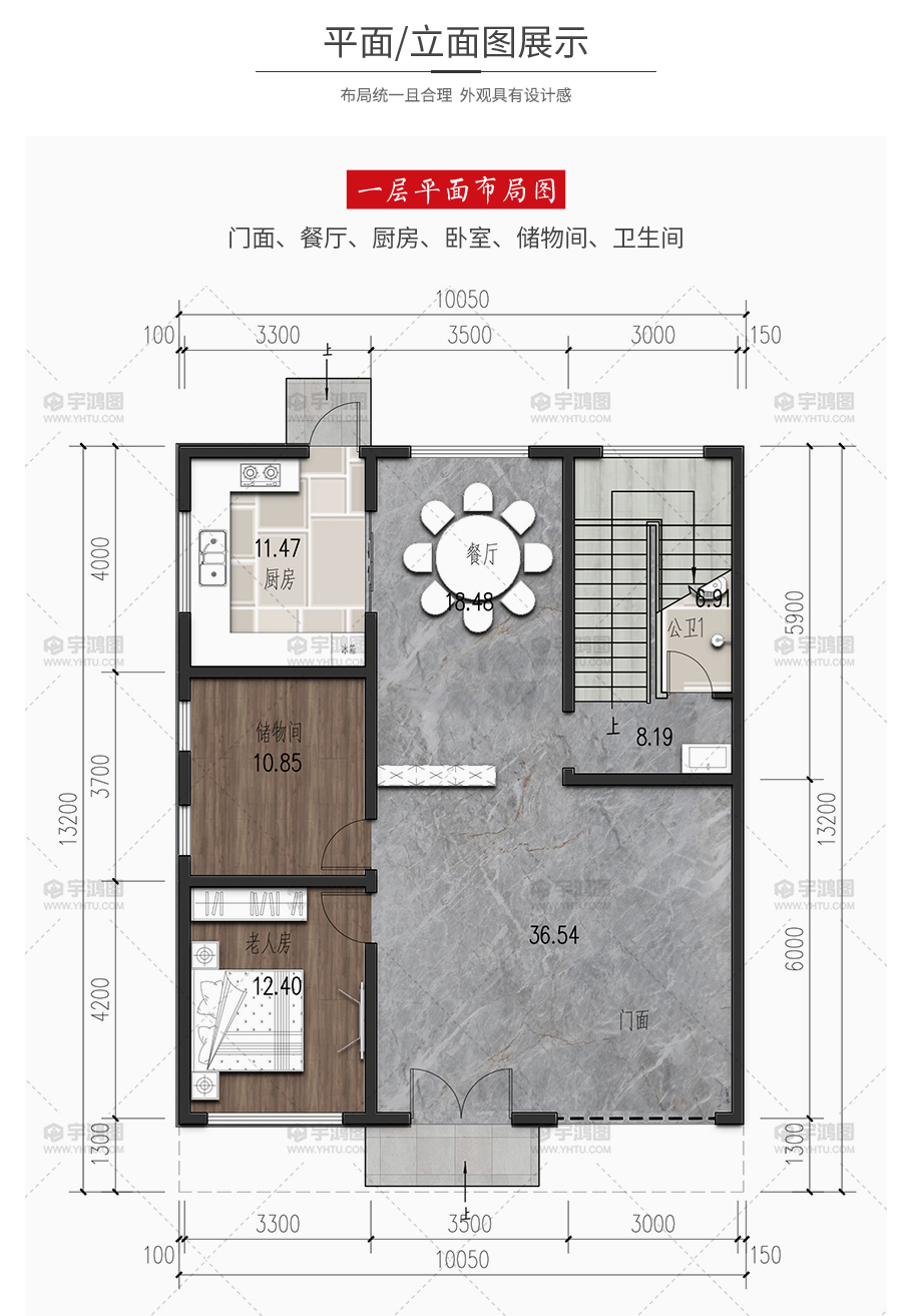 開間:10.5米 | 進深:13.2米 | 占地面積:132平方米 | 建筑面積:332平方米 |