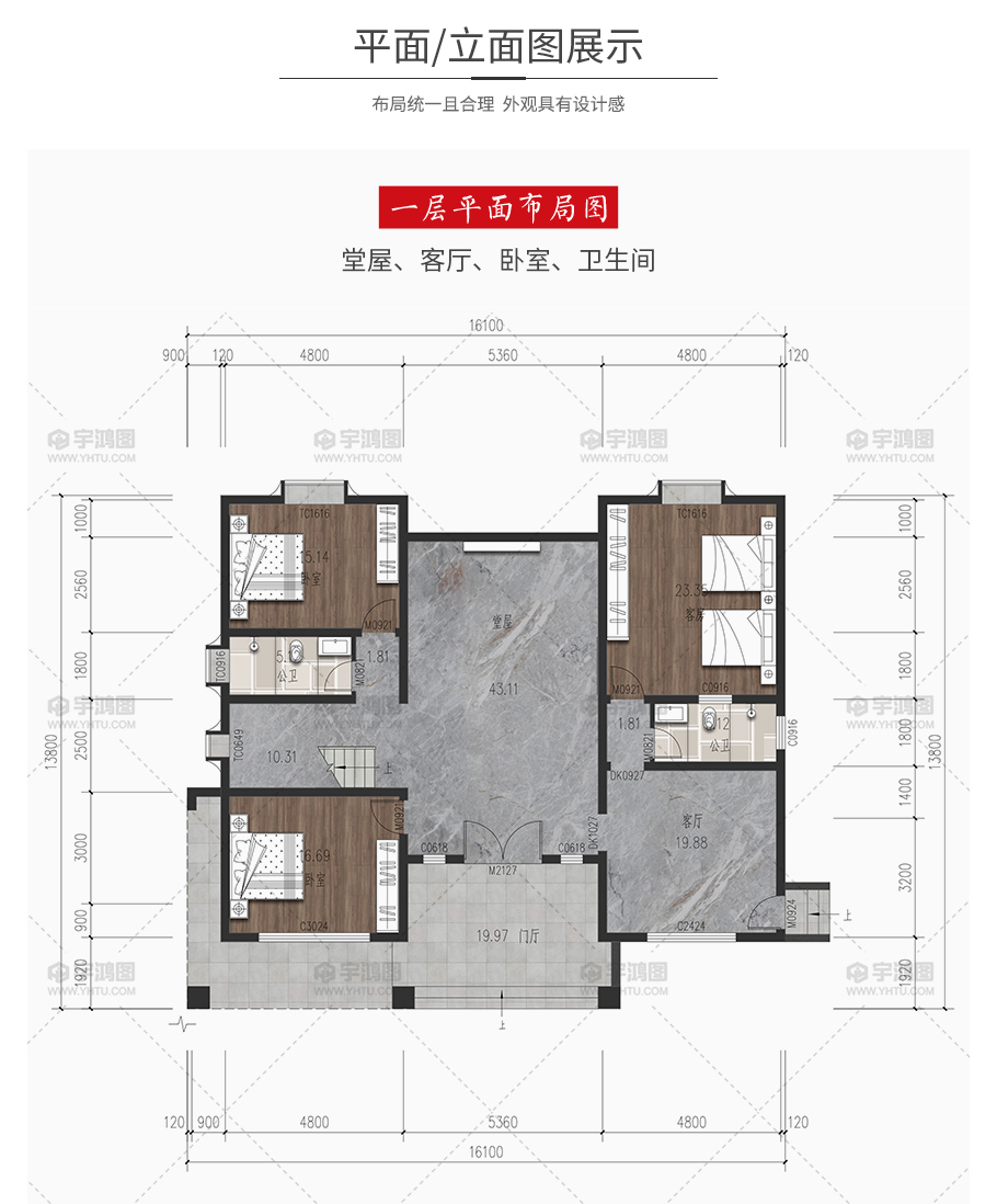 開間:16.1米 | 進深:13.8米 | 占地面積:202平方米 | 建筑面積:356.3平方米 |