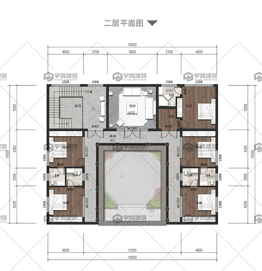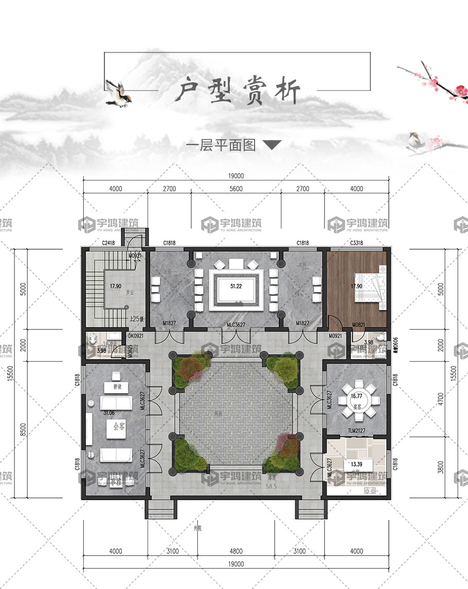 開間:19米 | 進深:15.5米 | 占地面積:303平方米 | 建筑面積:516平方米 |