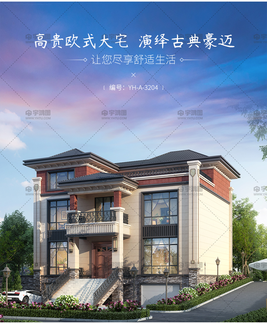 風格:歐式 | 層數:三層 | 結構形式:磚混結構 | 圖紙編號:YH-A-3204 |