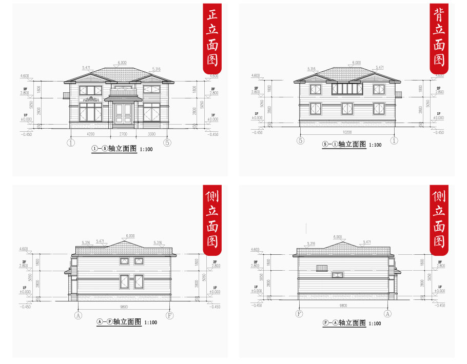 建筑圖: | 建筑平面圖:一層平面圖,二層平面圖; 建筑立面圖:東立面圖,西立面圖,南立面圖,北立面圖,剖面圖; 大樣圖:樓梯詳圖,細(xì)部大樣,門窗大樣 |