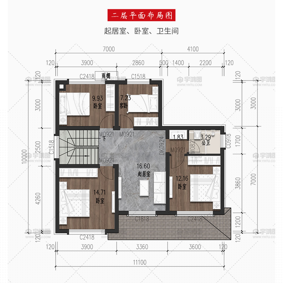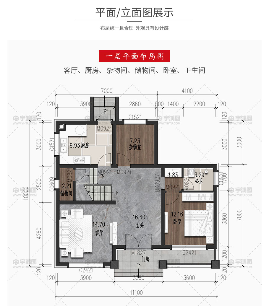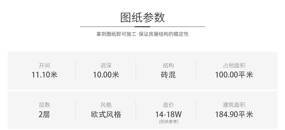 開間:11.1米 | 進深:10米 | 占地面積:100平方米 | 建筑面積:184.9平方米 |