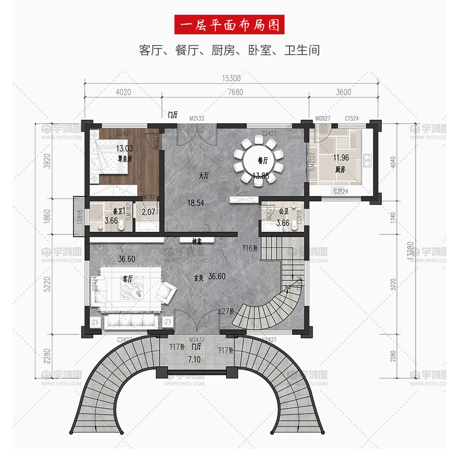 開間:15米 | 進深:13.28米 | 占地面積:150平方米 | 建筑面積:482平方米 |