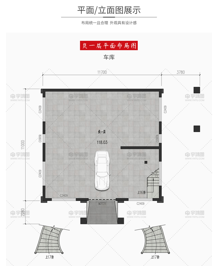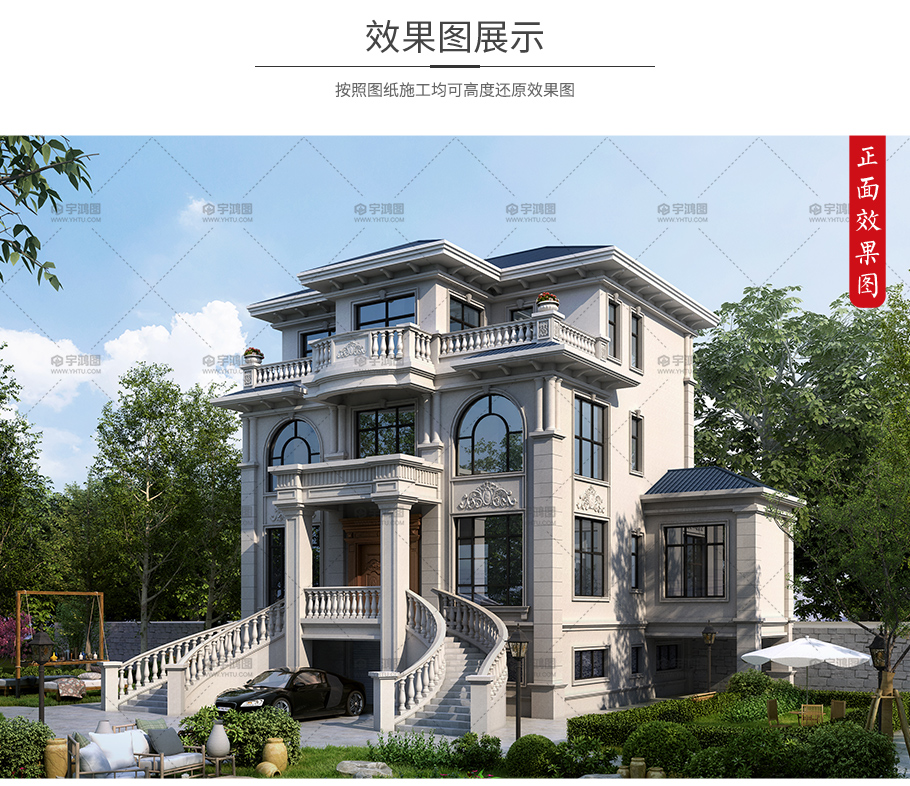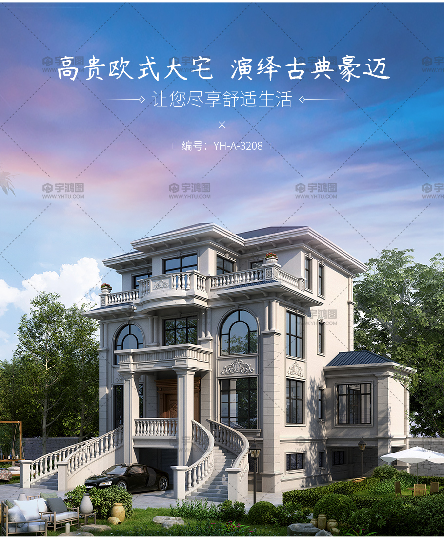 風格:歐式 | 層數:三層 | 結構形式:框架結構 | 圖紙編號:YH-A-3208 |