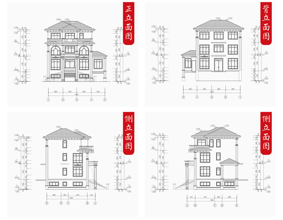 建筑圖: | 建筑平面圖:一層平面圖,二層平面圖,三層平面圖; 建筑立面圖:東立面圖,西立面圖,南立面圖,北立面圖,剖面圖; 大樣圖:樓梯詳圖,細部大樣,門窗大樣 |