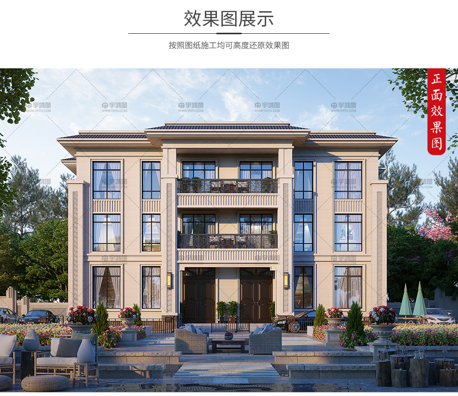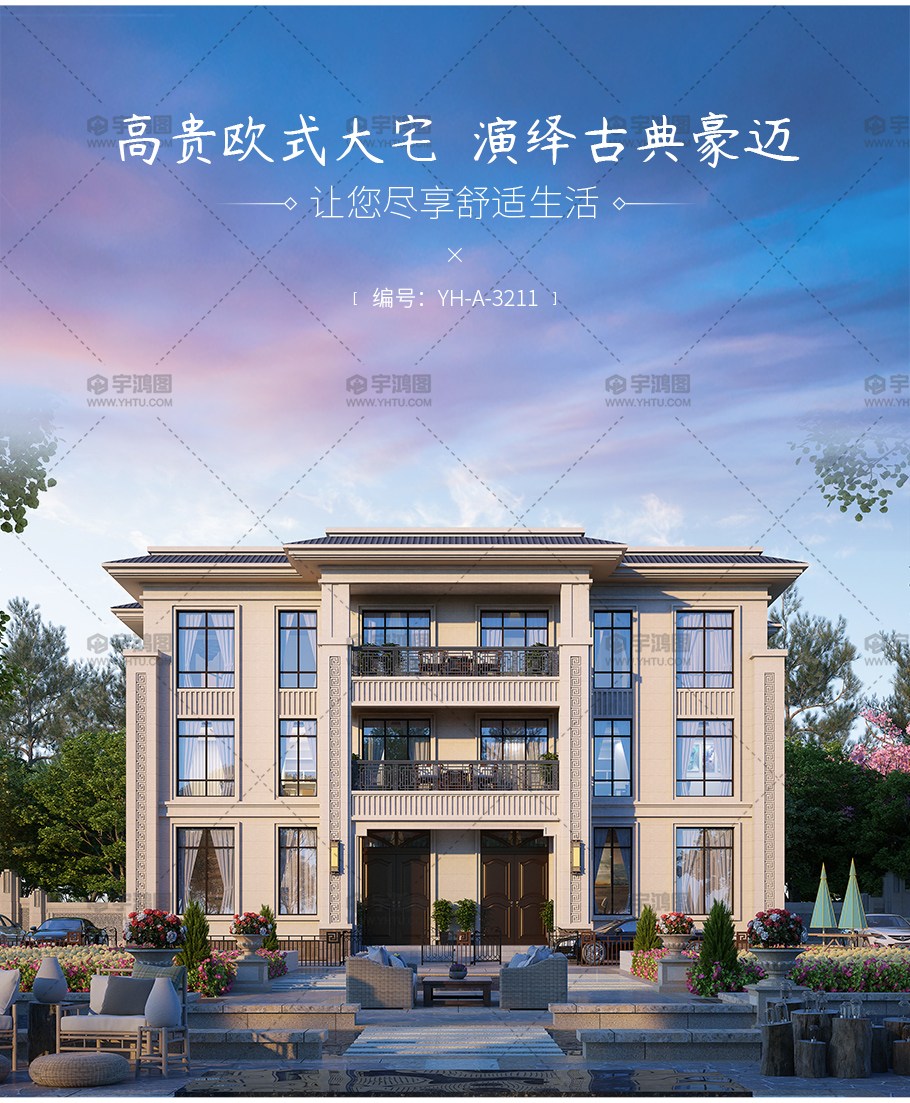 風格:雙拼 | 層數:三層 | 結構形式:框架結構 | 圖紙編號:YH-A-3211 |