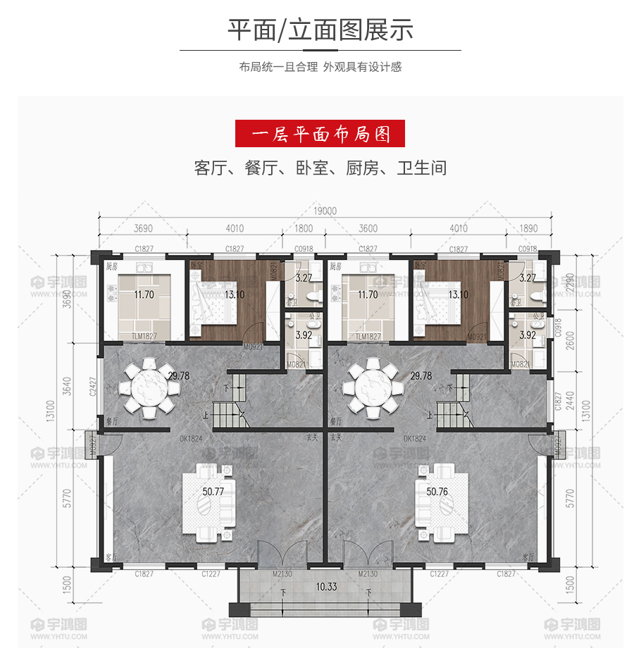 開間:19米 | 進深:13.1米 | 占地面積:260平方米 | 建筑面積:726平方米 |
