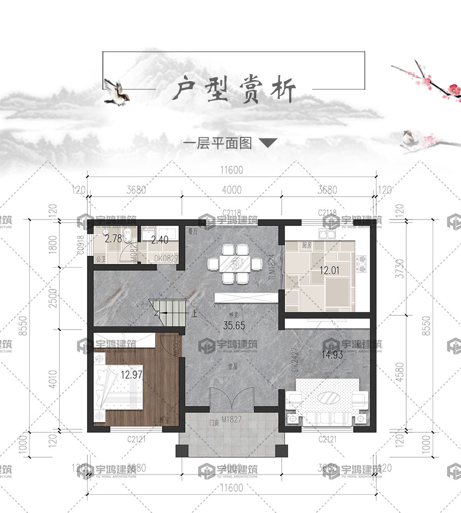 開間:11.6米 | 進深:8.55米 | 占地面積:103.31平方米 | 建筑面積:282.03平方米 |