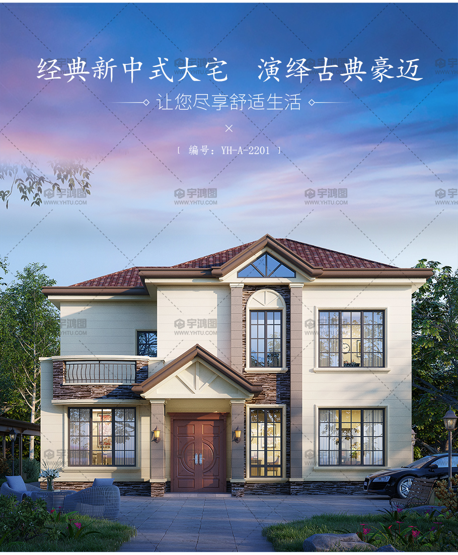 風格:美式 | 層數:二層 | 結構形式:磚混結構 | 圖紙編號:YH-A-2201 |