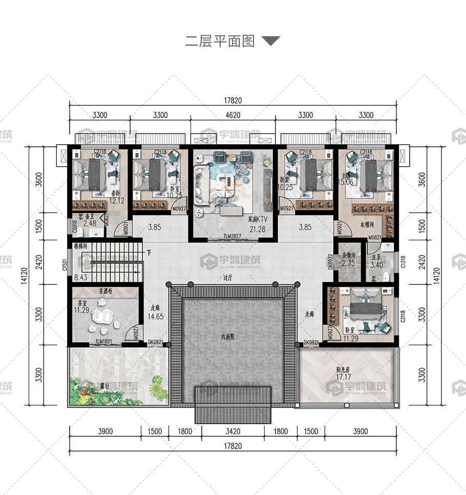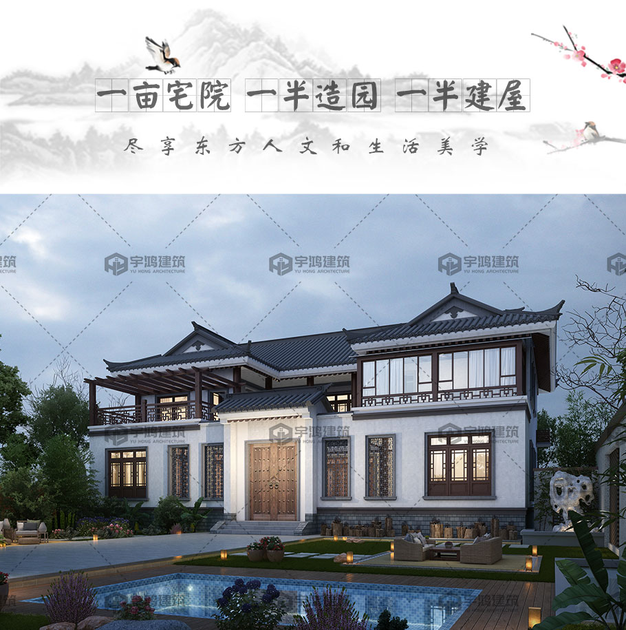 風格:中式 | 層數:二層 | 結構形式:磚混結構 | 圖紙編號:YH-A-2206 |